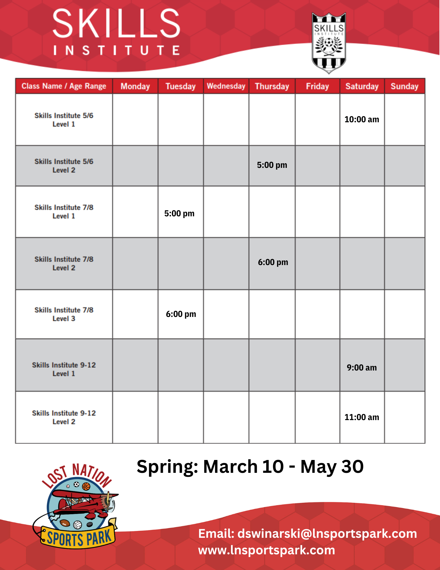 Cost: $20/week + an annual registration fee which includes your Skills Institute Kit!