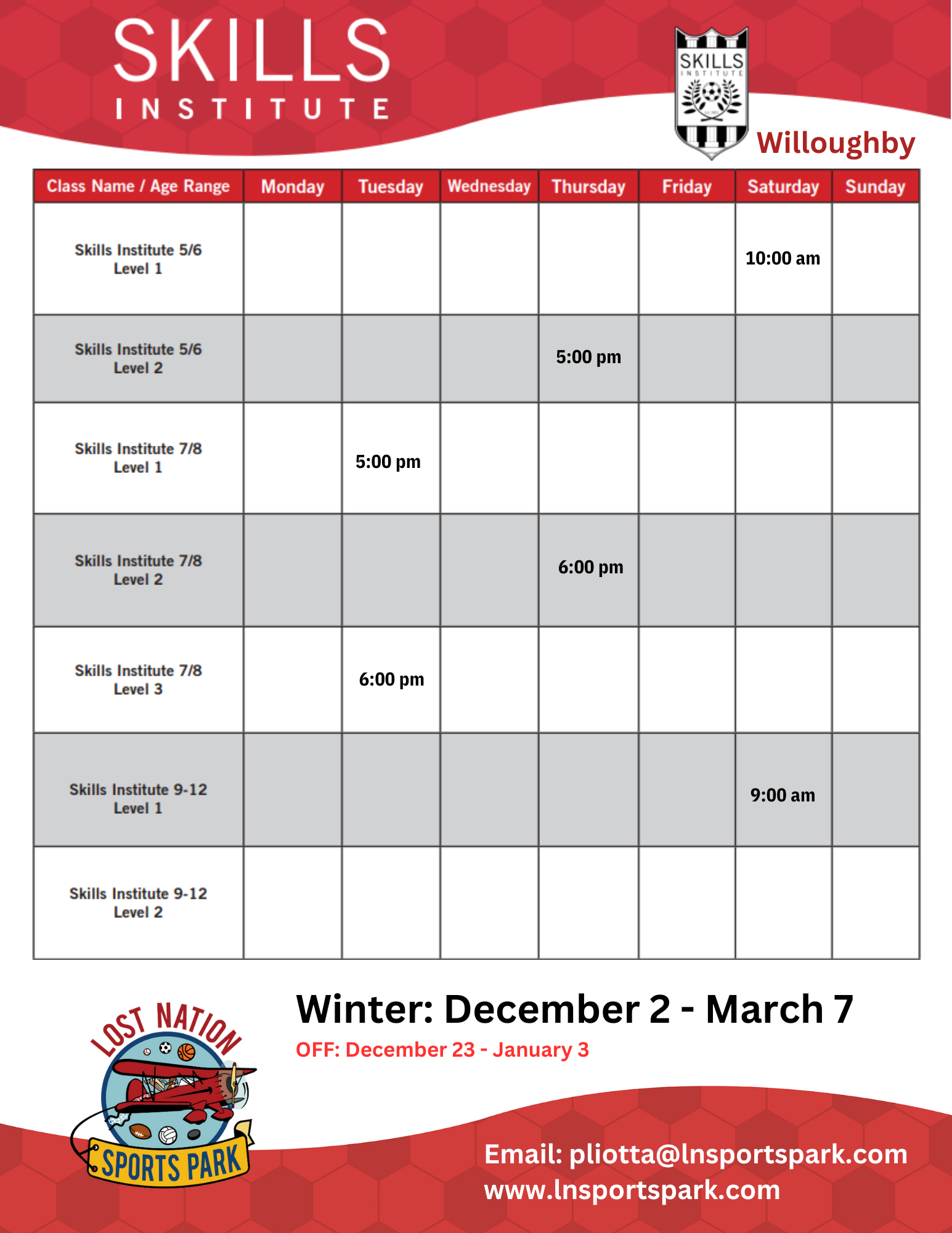 Skills Institute at Lost Nation Sports Park East – Willoughby